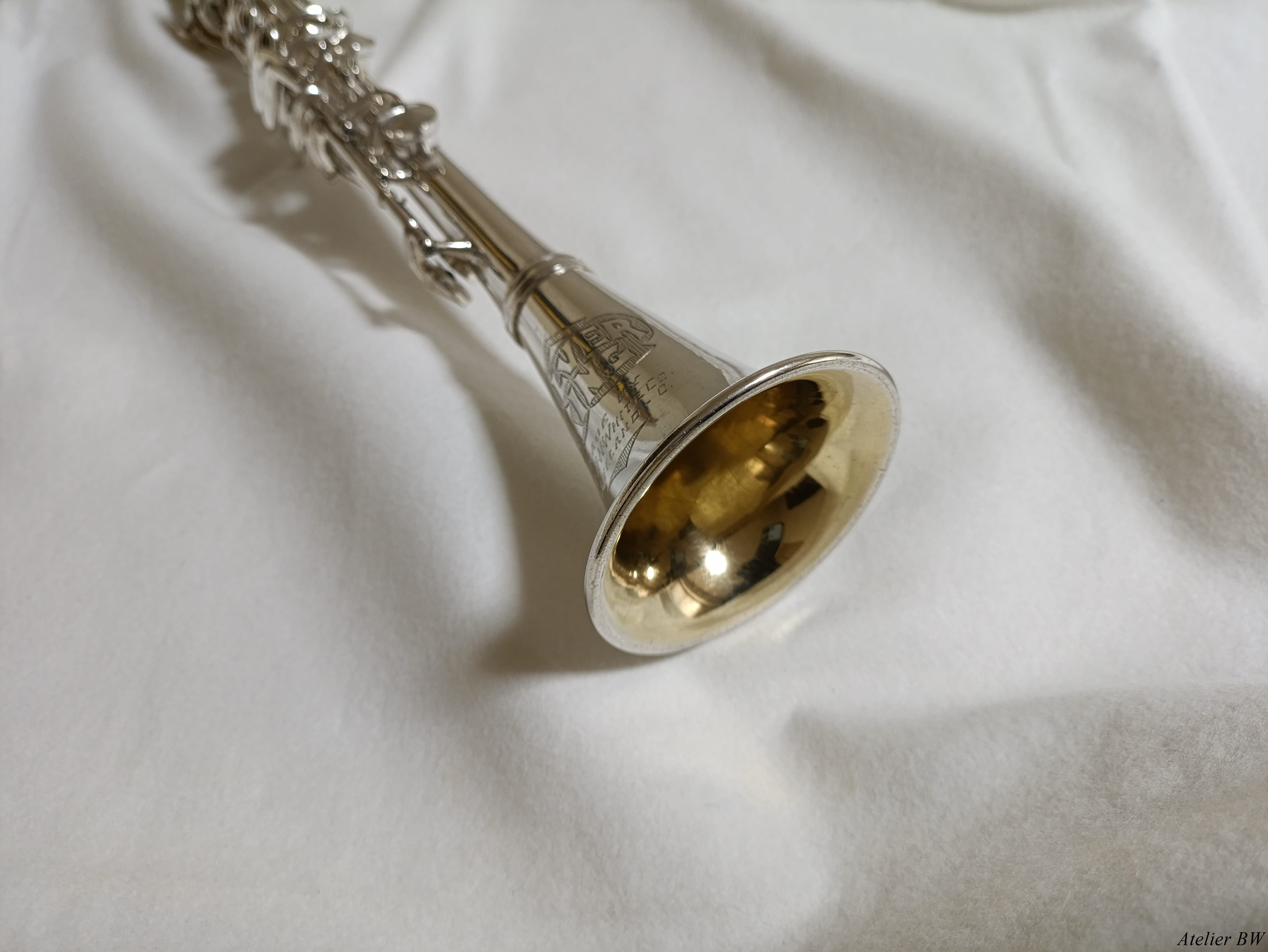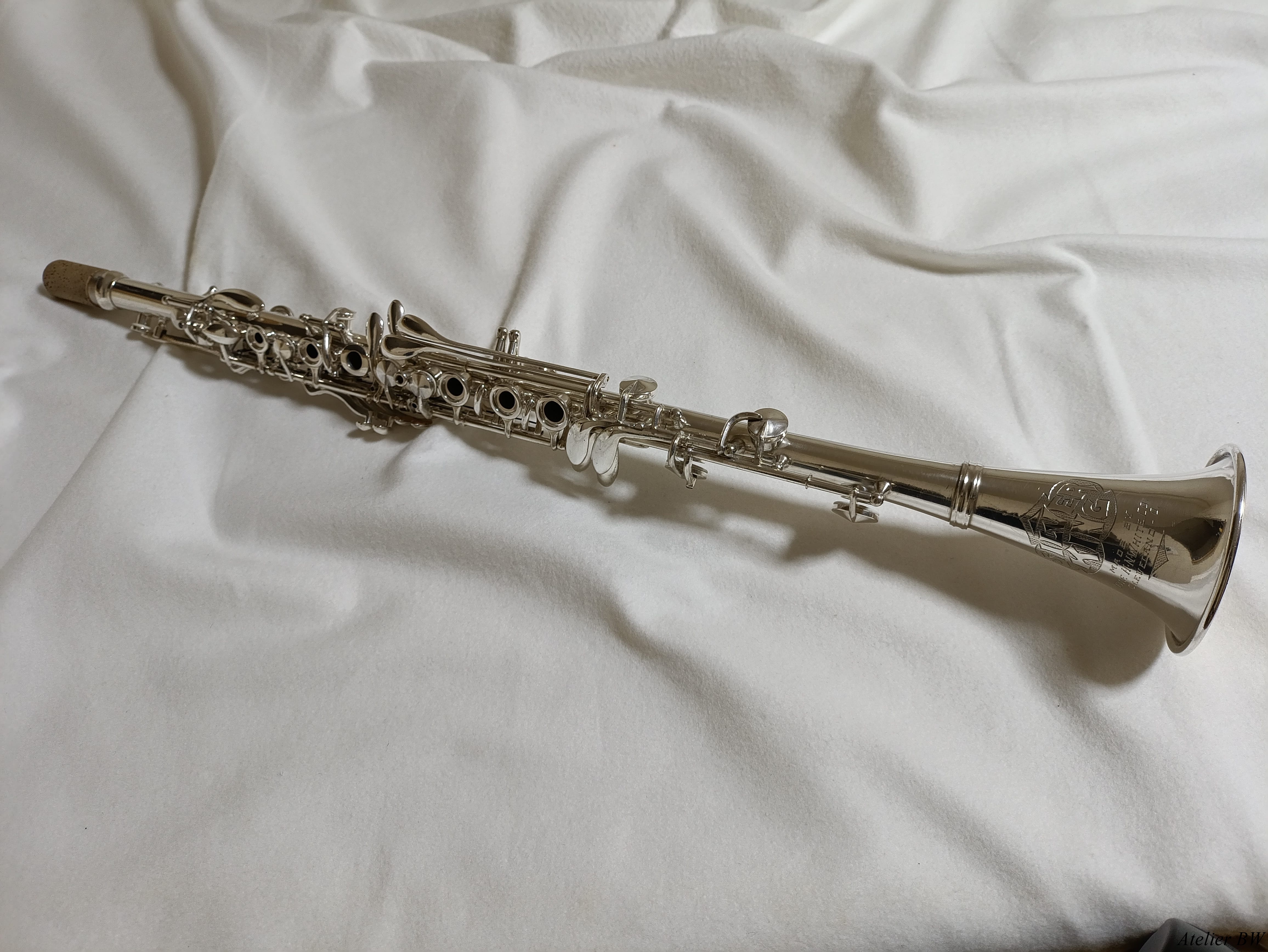1928年製の管体銀メッキ、ベルが純銀製(内側金メッキ)のKing Metal Clarinetです。